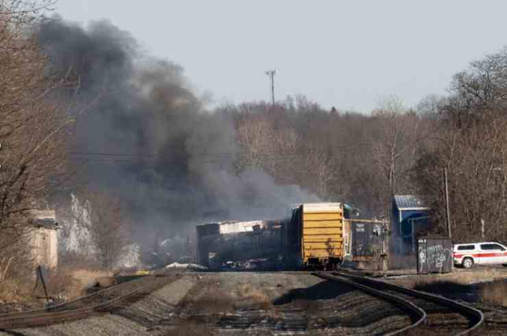L’incidente è avvenuto il 3 febbraio in Ohio ma i vagoni continuano ancora a bruciare e i materiali rilasciati stanno inquinando le falde acquifere.