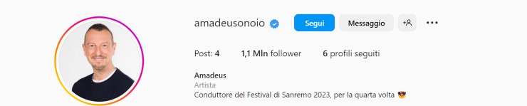 Il profilo Instagram di Amadeus