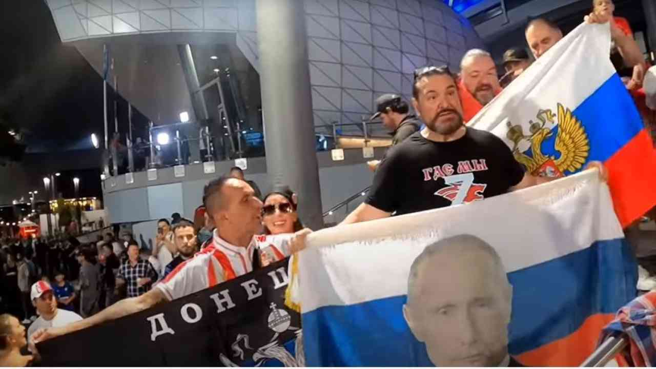 A confermare l’identità dell’uomo sono stati diversi giornalisti sportivi serbi, secondo i quali l’uomo avrebbe detto nella sua lingue “Viva la Russia“.