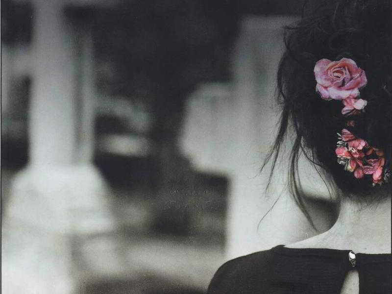 Guardiana di un cimitero, vive attraversando continuamente il confine tra la vita e la morte, tra i colori del lutto e quelli della natura, tra il passato e il presente.