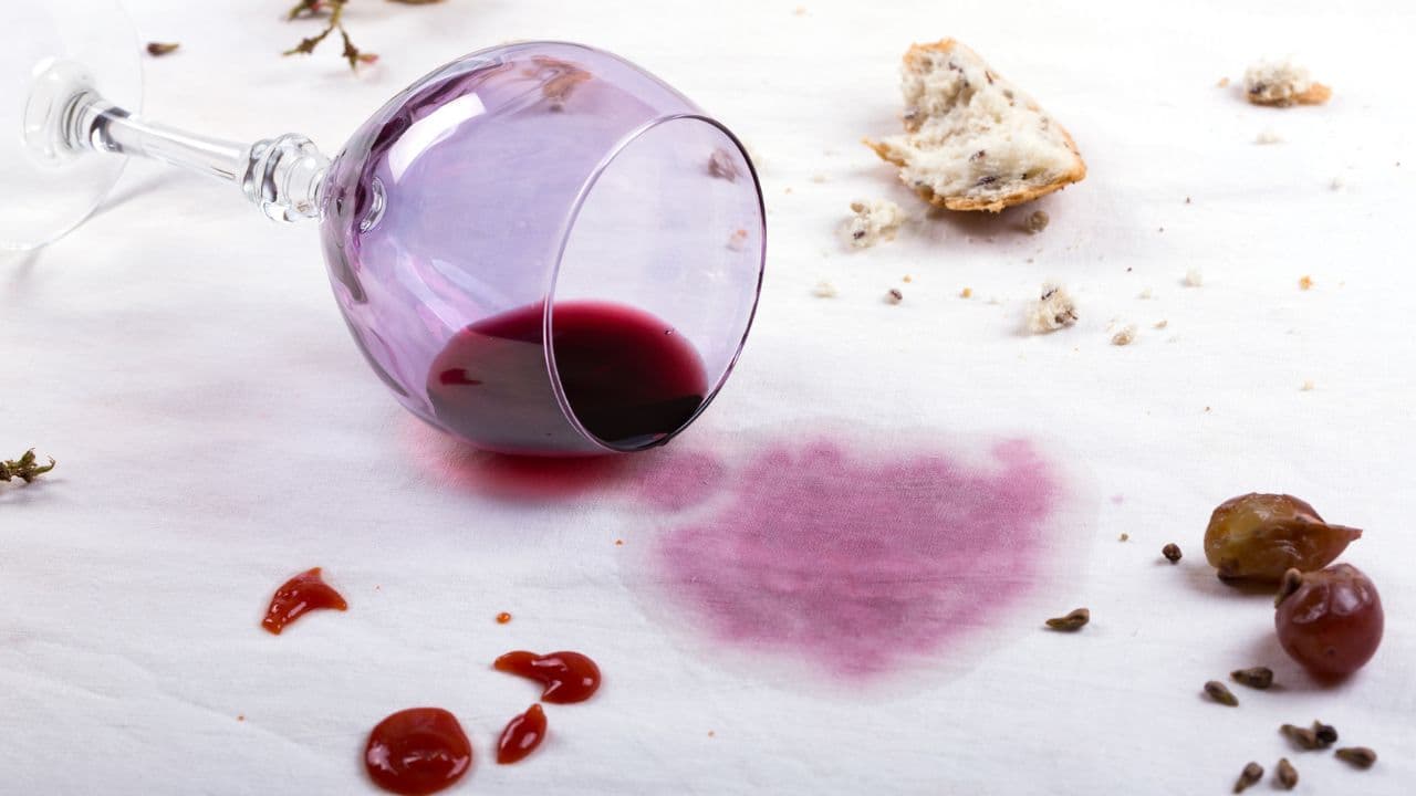 Per le macchie di vino, che di solito sono molto complicate da togliere, potete utilizzare il limone che ha alte proprietà sgrassanti (infatti viene utilizzato anche in molti detersivi).