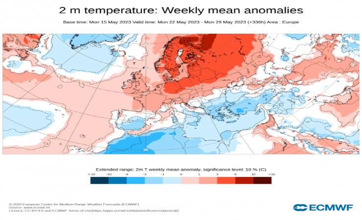 Le condizioni di pressione anomale negativa sull’intero bacino del Mediterraneo favoriranno un contesto ancora prevalentemente piovoso su tutto il territorio italiano. Le temperature dovrebbero gradualmente salire verso valori tipici dell’estate, anche se potrebbero ancora rimanere leggermente al di sotto delle medie, soprattutto al Sud, escludendo per il momento l’arrivo di un caldo intenso.