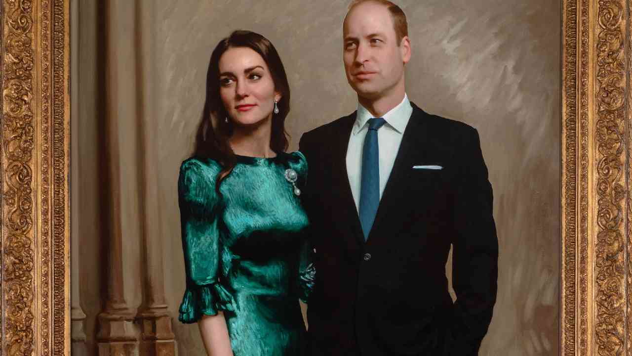 I duchi di Cambridge, William e Kate, hanno posato per il loro primo ritratto ufficiale, in cui spicca lo stupendo abito Falconetti verde smeraldo della duchessa.