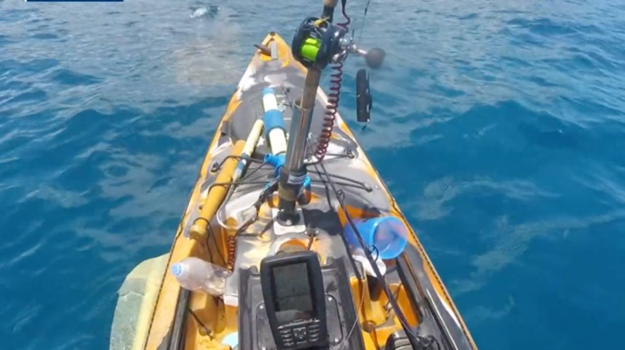 Le immagini infatti sono particolarmente crude, nonostante fortunatamente il pescatore sia uscito illeso dallo spiacevole incontro. Lo squalo, come si vede nel video condiviso dalle emettenti locali, ha infatti raggiunto a pelo d’acqua il kayak, per poi sferrare un attacco improvviso alla piccola imbarcazione con una ferocia e una forza sbalorditiva.